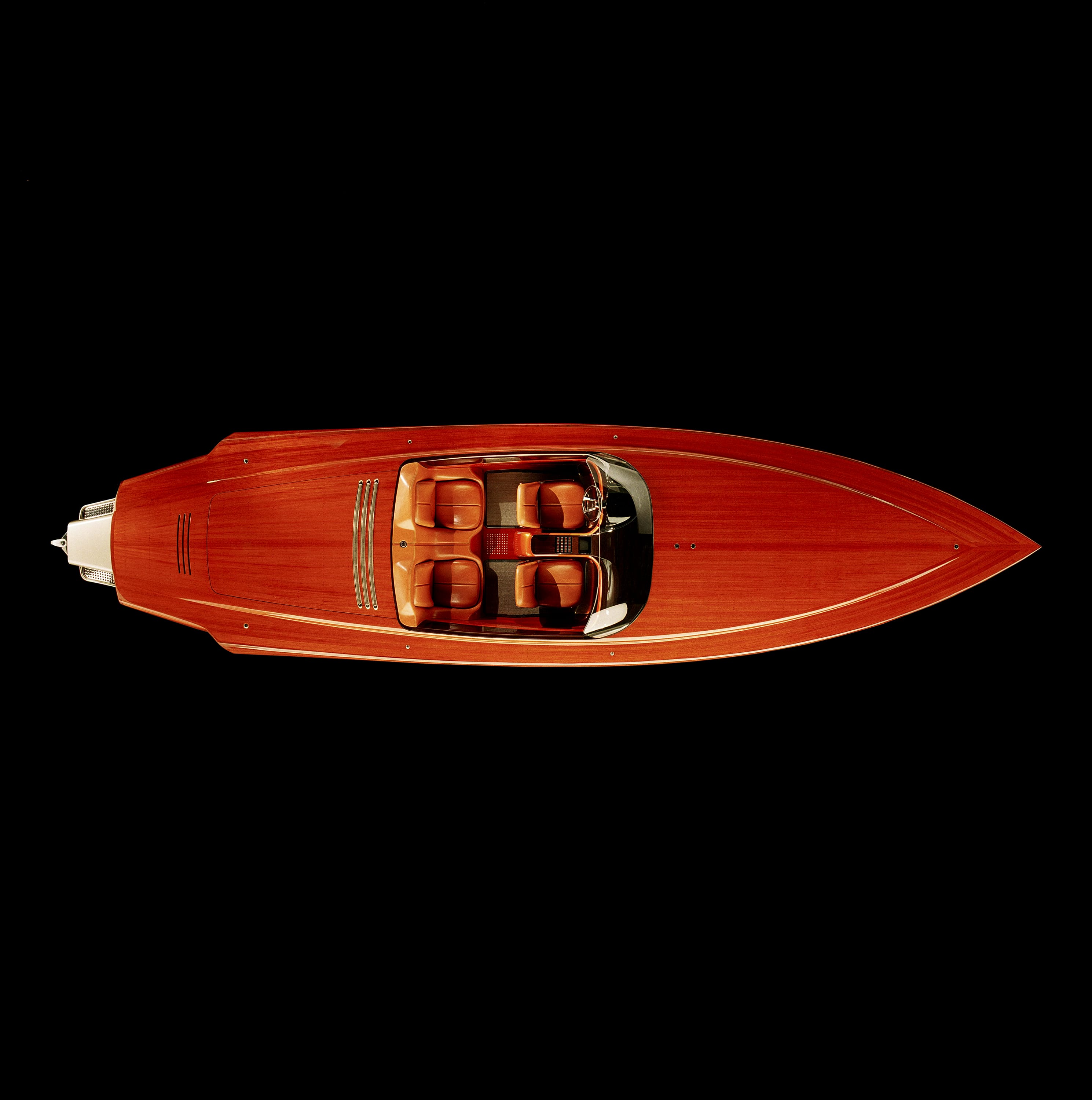 From her curved mahogany lines to her custom fabricated drivetrain, she is the epitome of craftsmanship and engineering. Designed by Michael Peters Yacht Design, the boat is a stunning example of the level to which wooden boats can ascend. In typical Van Dam style, Alpha Z is built to the highest standards in modern laminated wood construction. The 3/4″ hull bottom is double-planked with two layers of Okoume plywood. The 9/16″ hull and deck are triple-planked with the third skin being Honduran mahogany, hand selected for both grain pattern and color.